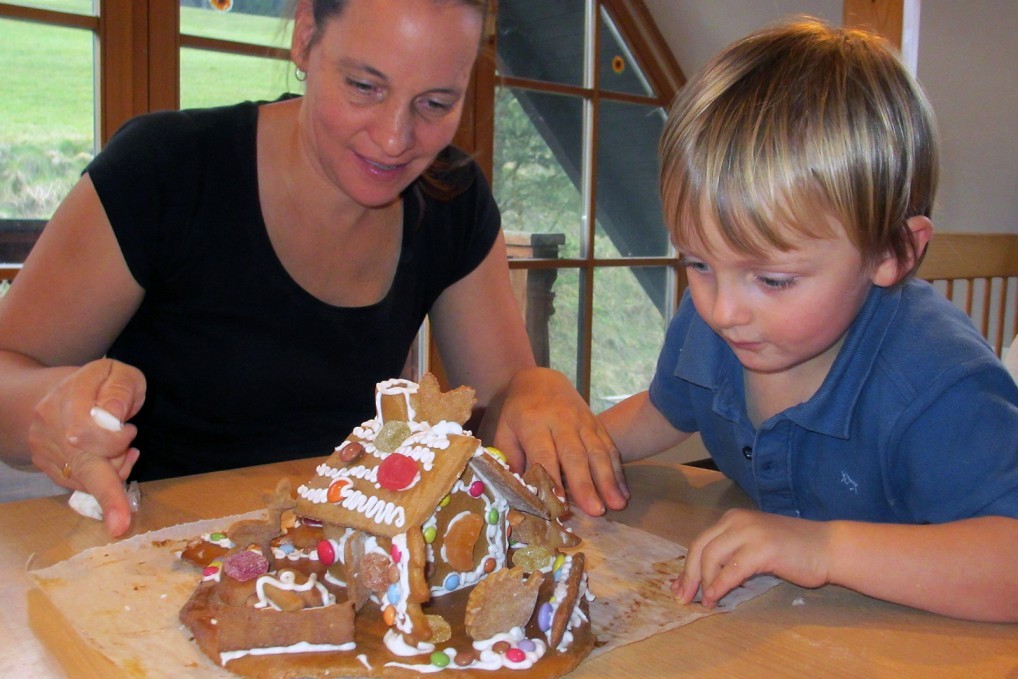 Aufenthalt in einer urgemütlichen Ferienhütte mit eigener Sauna. Zirka zwei Stunden Lebkuchen Baumeister- Kurs für Interessierte von sechs bis 99 Jahren (unter 6 Jahren nur mit Begleitung eines Erwachsenen).